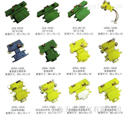 大三極、雙電刷、普通轉彎、轉彎、大頭雙電刷、高低腳轉彎、高低腳、多極滑觸線集電器普通型四極、高低腳四極、普通型、普四極ZJG、小雙電刷、五極、四極、雙蓋雙孔、六極轉彎、小七極管、大七極管、八極轉彎、十極管、十六極、防塵雙電刷、大四極、四線插座多極滑觸線集電器。