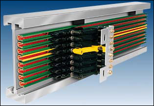 HXPnR- H系列單極組合式滑觸線由H型鋁合金本體導軌加壓V型不銹鋼滑接帶、PVC絕緣外殼、外置式集電器以及懸吊、固定等組件組合而成。該產品以其設計新穎、結構合理、維護方便、使用安全等特點被廣泛應用于電流較大、使用頻率較高、運行速度快和環境較差的場合。
